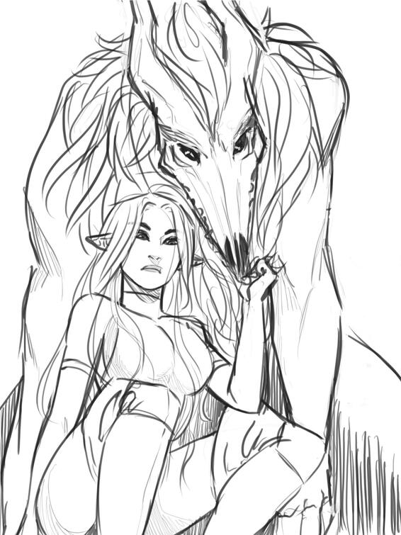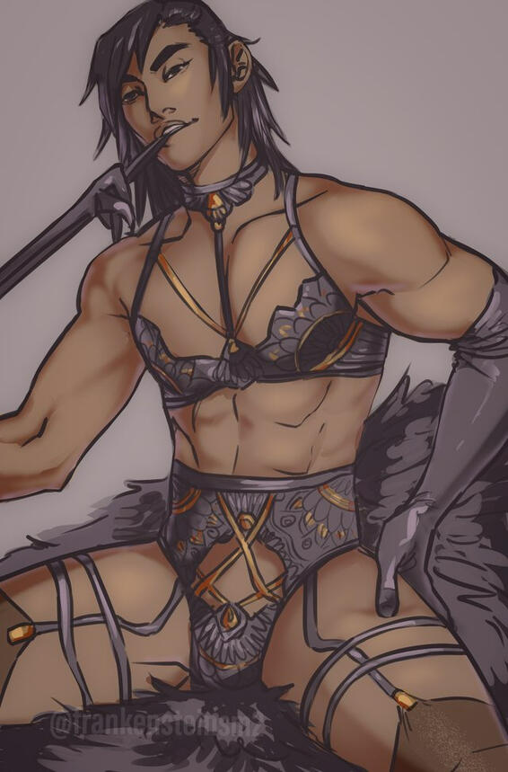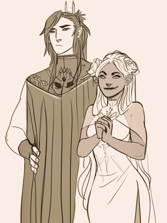 Because I am a massive romance nerd, obviously a significant portion of the story revolves around them figuring out how to bang each other and most of the art I've done of them is just that.