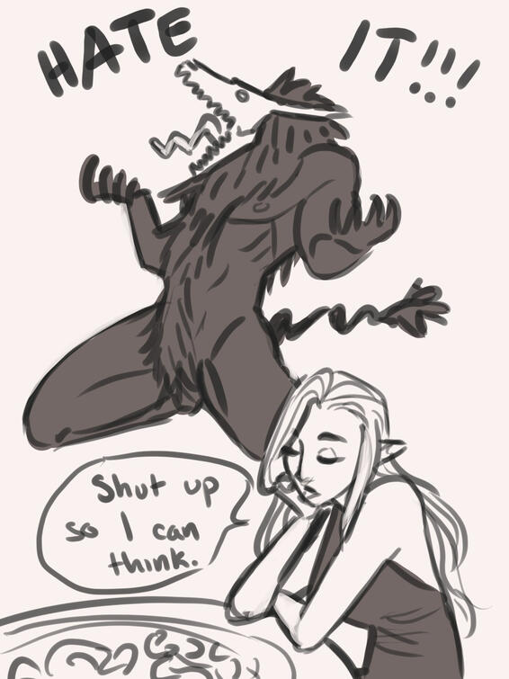 One of the central protagonists, she is a wood elf who is a giant nerd and is physically lazy but mentally sharp in both intellect and social graces.