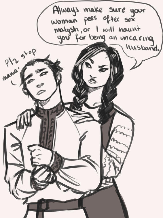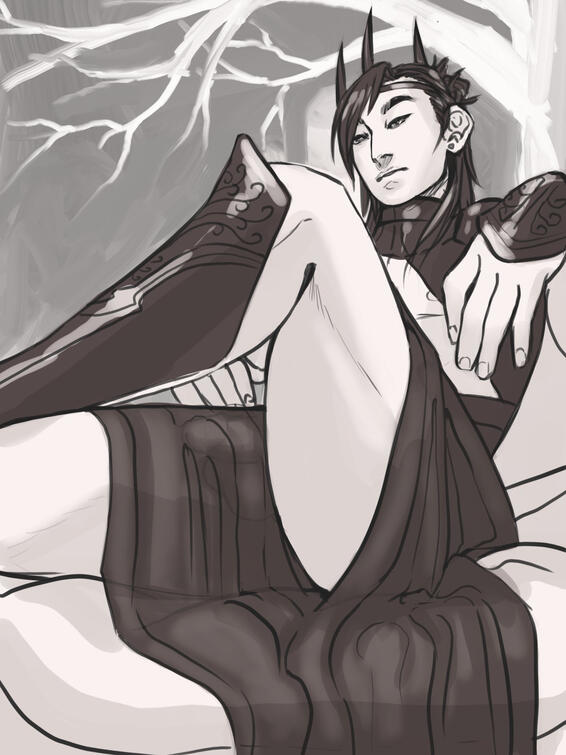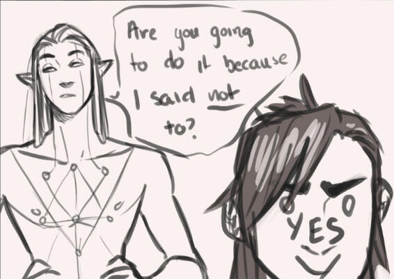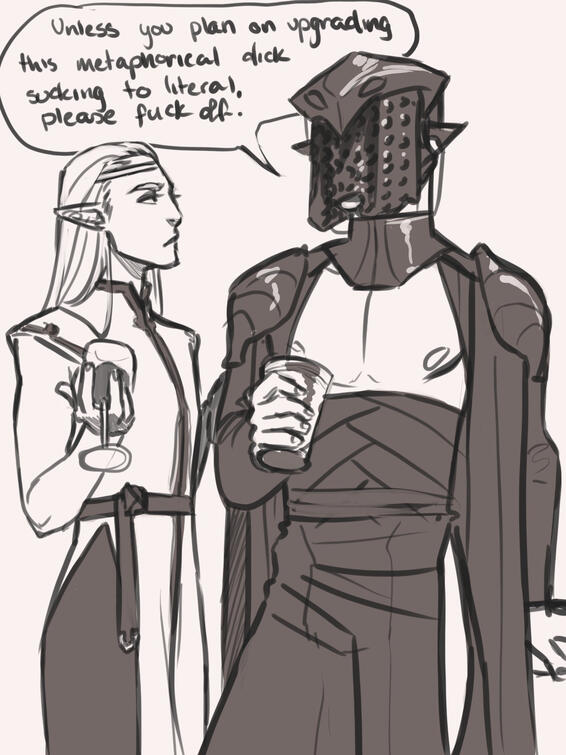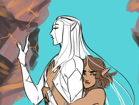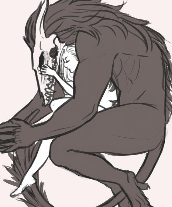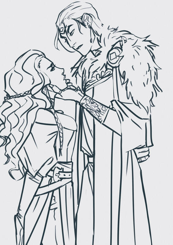 Because I am a massive romance nerd, obviously a significant portion of the story revolves around them figuring out how to bang each other and most of the art I've done of them is just that.