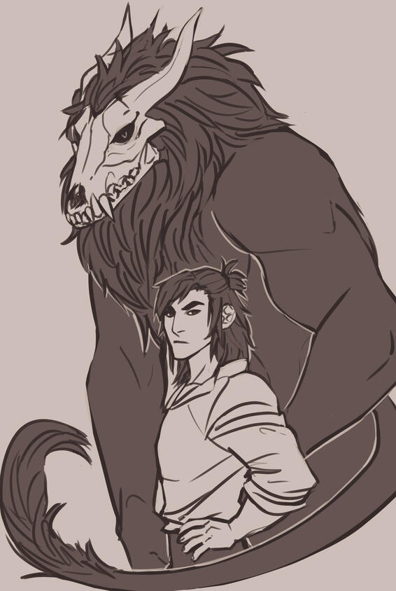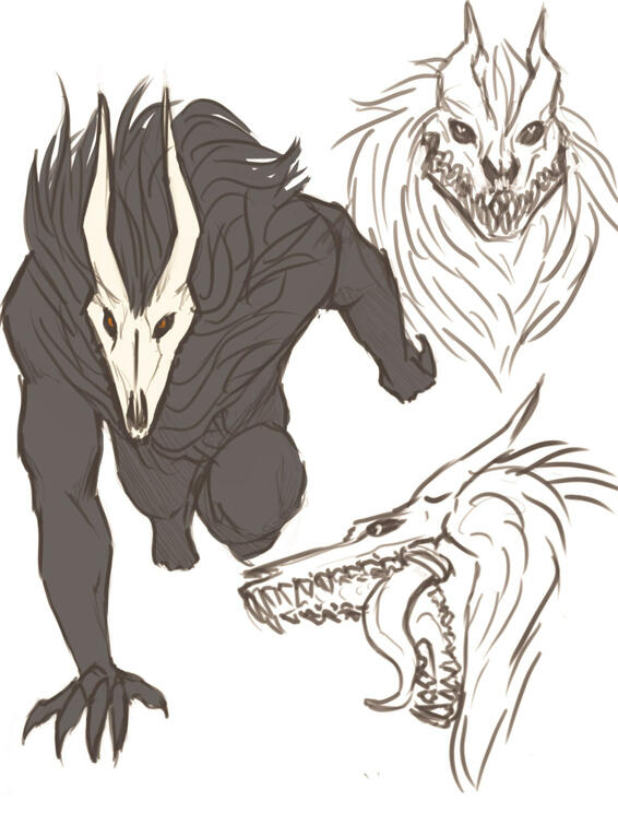 Due to a novel coming out in 2022 that had a cover with figures that looked overly similar to them (by accident, we were inspired by the same sources) I changed Aleksei's monster design to distinguish the two.