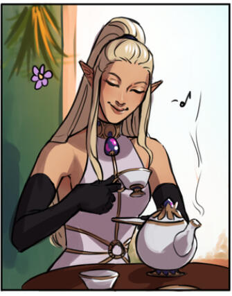 One of the central protagonists, she is a wood elf who is a giant nerd and is physically lazy but mentally sharp in both intellect and social graces.