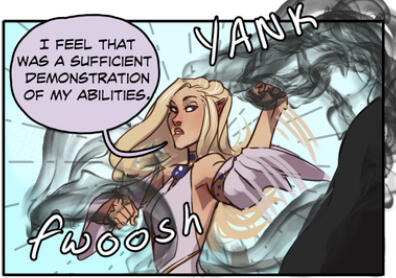Gwen needed the assistance of a Nekyia to accompany her in dealing with Ludycian shards, so she hunted down Aleksei to try to hire him, because he was fairly easy to find due to both his infamy and his more recent habit of wandering around and helping people. She's very pretty, so he was (mostly) easy to hire.